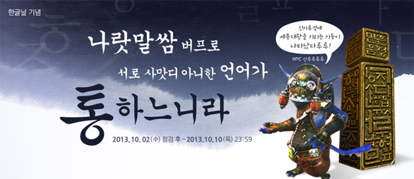 22년만에 공휴일로 지정된 한글날과 2013년 프로야구 포스트시즌을 기념해 게임 업계가 다양한 이벤트로 가을잔치를 열고 있다.