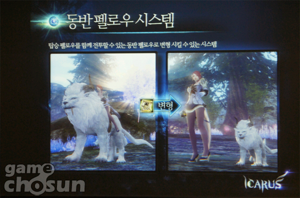 위메이드의 석훈 이카루스 개발팀장은 "이카루스의 메인 콘텐츠는 '펠로우' 시스템으로 유저는 자신이 원하는 어떤 몬스터든 길들이기를 통해 펠로우로 만들 수 있다"고 말한 뒤 "이번 파이널 CBT에선 동행 펠로우 및 옵션 부여 등 펠로우를 활용한 신규 콘텐츠들이 보강됐다"고 전했다.