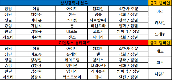 1세트 삼성갤럭시블루(파랑진영) 승 <드래프트모드> CJ엔투스블레이즈(보라진영)