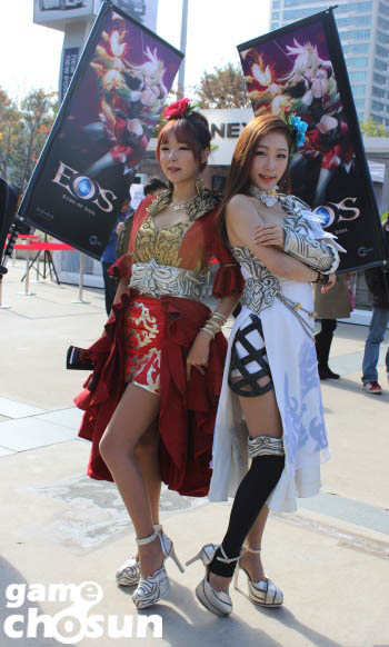 14일부터 17일까지 진행되는 게임인의 축제 '지스타2013'에서 열린 벡스코 현장에서 NHN엔터테인먼트의 MMORPG '에오스' 캐릭터로 분한 모델들이 포즈를 취하고 있다.