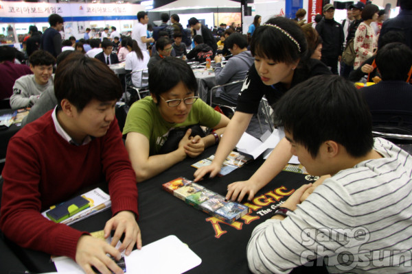 지스타2013의 한 켠에 마련된 보드게임존에서는 매직 더 게더링을 직접 플레이 해볼 수 있다. 매직 더 게더링은 확산성 밀리언아서나 이너월드처럼 모바일 게임이 표방하는 자동전투 TCG와는 다르다. 오히려 최근 발표된 블리자드의 CCG(Collected Card Game) 하스스톤처럼 전략적으로 자신만의 덱을 짜고, 상황에 맞춰 전술을 펼쳐야 한다. 컴퓨터로 즐기는 게임과는 다르게 라이프 계산이나 마나 계산 등을 직접 해야하므로 초보자는 다소 어렵게 느껴질 수 있지만 도우미가 상시 대기하며 자세하게 가르쳐주기 때문에 쉽게 배울 수 있다.