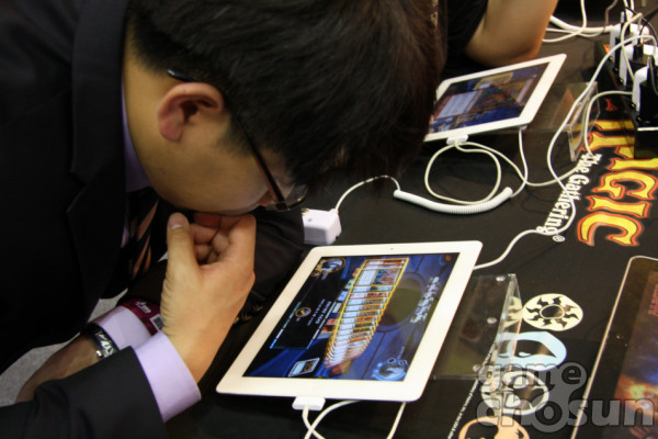 오프라인 매직 더 게더링뿐만 아니라, 한 쪽에서는 태블릿을 통해 매직 더 게더링을 체험해볼 수도 있다.