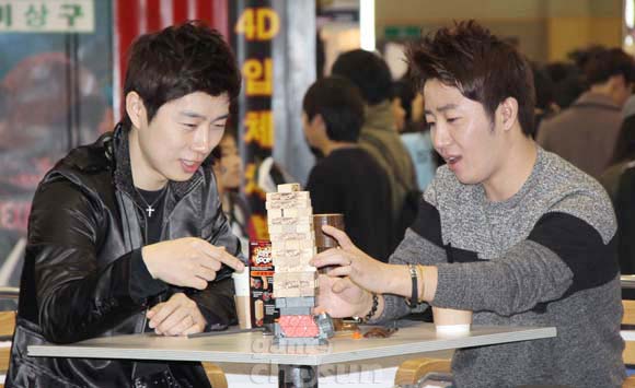 임요환과 홍진호는 16일 오전 11시 부산 해운대구 벡스코 코리아보드게임즈 부스에서 '지니어스2:룰브레이커' 이벤트를 진행했다.