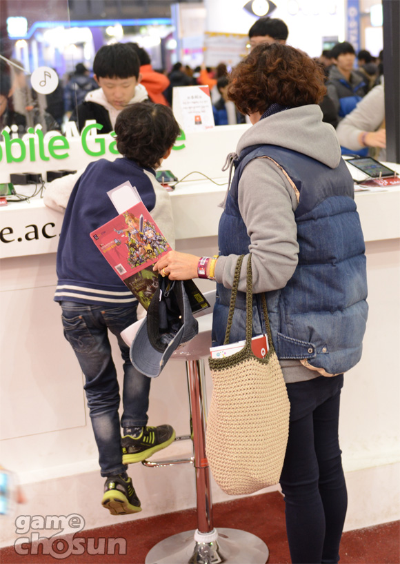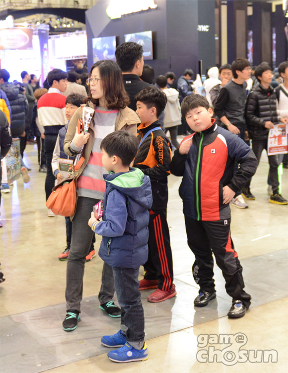 국내 최대 게임쇼 '지스타2013' 마지막날인 17일에 가족 단위 관람객이 모여 눈길을 모으고 있다. 부모님 동반 혹은 아버지, 어머니와 함께 나들이 온 이들은 좋아하는 게임을 체험하여 즐거운 시간을 보내고 있다.