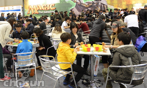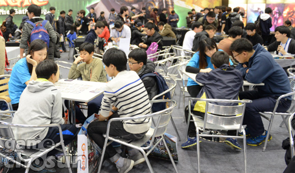 가족단위 관람객이 특히 많이 찾은 곳은 80부스의 대규모로 차려진 보드게임체험관이다. 전통적으로 마니아가 많은 '매직더개더링'을 비롯, 최근 인기기를 모으고 있는 '소드걸스' TCG(트레이딩 카드게임) '고려' 등이 이용자들이 주로 찾는 보드게임이었다.