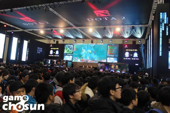 넥슨은 총 80부스 규모의 전시장 중 60부스를 '도타2'에 할애, 게임시연과 함게 e스포츠 대회를 열어 관람객들의 눈길을 사로 잡았습니다.