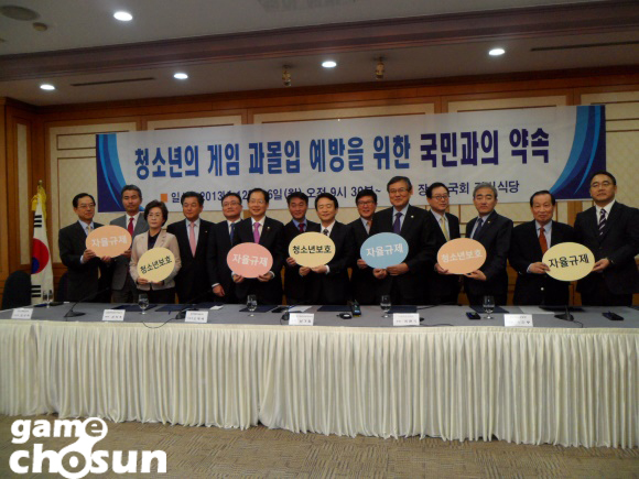 이날 MOU에는 미래창조과학방송통신위 한선교 위원장, 교육문화체육관광위 신학용 위원장, 여성가족위 김상희 위원장, 보건복지위 오제세 위원장 등 국회 관련 상임위원장과 SK텔레콤·KT·LG유플러스 등 이동통신사, 단말기 제조사인 삼성전자, 게임업계를 대표하는 한국인터넷디지털엔터테인먼트협회 등이 서명했다.