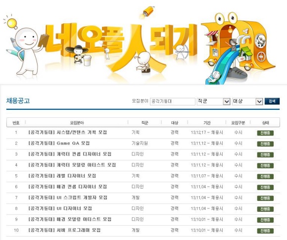 26일 관련업계에 따르면 넥슨의 자회사 네오플은 최근 일본 애니메이션 '공각기동대'를 소재로 한 동명의 온라인게임 개발을 위해 시스템/컨텐츠 기획을 비롯해 캐릭터 컨셉 디자이너 등 다양한 분야에 걸친 인재 모시기에 적극 나서고 있다.