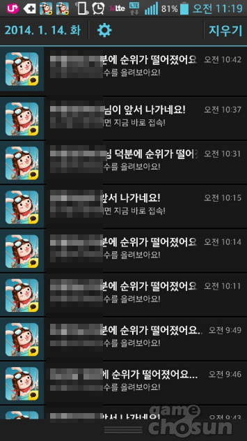 현재 ‘애니팡2’는 유사성 논란 외에도 과다한 푸쉬로 이용자의 눈살을 찌푸리게 하고 있다. 순위 바뀜에 따라 자동으로 이용자에게 보내지는 푸쉬가 너무 잦다는 것. 실제로 짧게는 3분에 하나씩 ‘애니팡2’ 푸시가 핸드폰을 울려대고 있다.