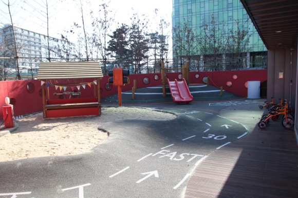 사내 직원대상의 문화·예술 체험 프로그램 운영이 가능한 '크리에이티브 랩', 직원교육 공간, 체력단련실, 건강보건소, 넥슨컴퍼니 임직원의 미취학 자녀를 위한 사내 어린이집, 여직원 수유공간도 넥슨 신사옥 중심에 자리잡고 있다.