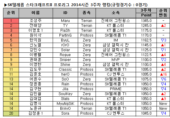 프로리그에서 맹활약하고 있는 톱 플레이어 중 조성주, 전태양, 이영호가 랭킹 톱3를 기록하며 테란 종족을 이끌고 있다.