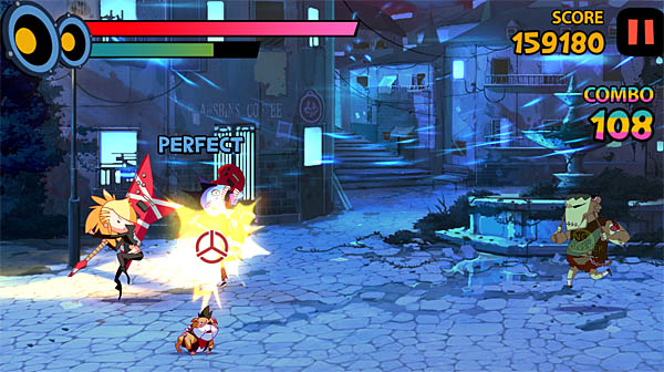 ‘통쾌’는 바로 게임 플레이. 보통의 리듬액션게임과 달리 횡스크롤 화면에서 달려오는 적을 ‘해머’로 날려버리는 손맛은 짜릿하고 통쾌하다.