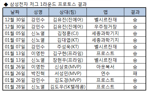 이들 외에 박진혁이 출전했으나 서성민에게 패하며 유일하게 프로토스전 패배를 기록한 바 있다. 총 11경기에서 10승1패라는 실로 어마어마한 성적을 거뒀다.