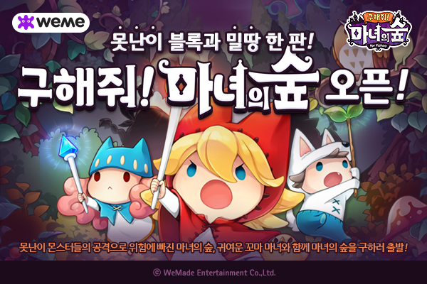 마녀의숲은 아기자기한 그래픽이 특징인 신작은 귀여운 마녀 캐릭터를 좌, 우로 움직이며 정령공을 튕겨 매 스테이지마다 등장하는 보스 몬스터와 그를 지키는 못난이 블럭을 무찌르는 방식으로 진행된다.