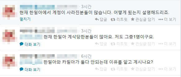 그런데 이 사이 인터넷 '확산성 밀리언아서' 커뮤니티를 중심으로 개인계정 삭제 및 계정이 초기화됐다는 글이 속속 게재, 이용자들 사이에서 주의를 당부하는 여론이 형성됐다.