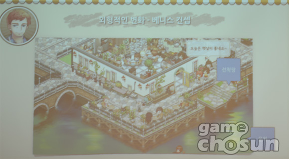 이은재 '아이러브파스타' PD는 "이탈리아 베니스를 연상 시키는 배경을 위해 선착장은 물론 밤과 낮이 다른 그래픽 환경을 구현했다"며 "이용자는 실제 베니스에 와 있는 듯한 기분은 물론 시간의 경과에 따라 변화된 그래픽을 보면서 높은 몰입감을 느낄 것"이라고 말했다.