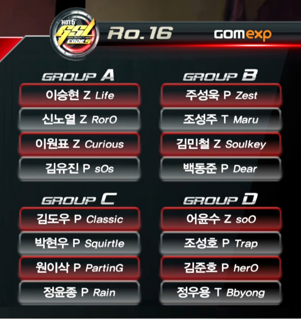 곰TV는 핫식스 GSL 시즌1 코드S 16강 일정이 바뀐다고 밝혔다. 이유는 오는 13일(이하 현지시각)부터 치러지는 IEM 시즌8 월드 챔피언십에 출전하는 선수들의 출국 일자에 맞춰야 하기 때문이다.