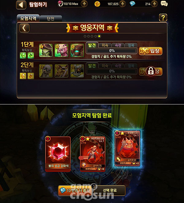 영웅지역은 상급 강화석을 얻을 수 있고 플레이 시 반지 2개를 소모하고 부활이 불가능하다.