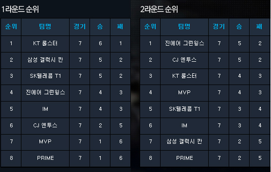 ◆ SK텔레콤 프로리그 2014 1-2라운드 순위표