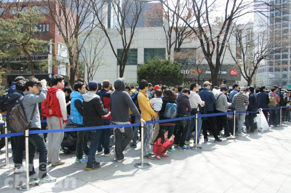 현장에 첫번째 이용자로 줄을 선 '리니지' 유저는 새벽 3시부터 기다렸으며, 오후 1시20분 현재 선착순 정원 300명이 마감된 상태다.