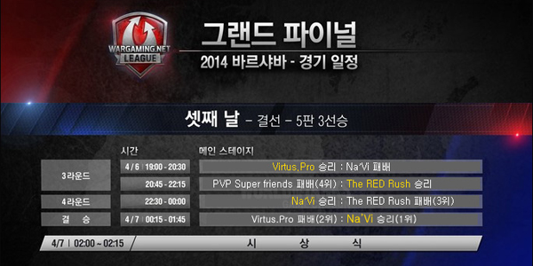 워게이밍은 4월 6일(오후 12시, 중앙유럽 표준시) 폴란드 바르샤바에서 ‘워게이밍넷 리그 그랜드 파이널(Wargaming.net League Grand Finals, 이하 WGL 그랜드 파이널)’의 3일차 일정을 진행했다.