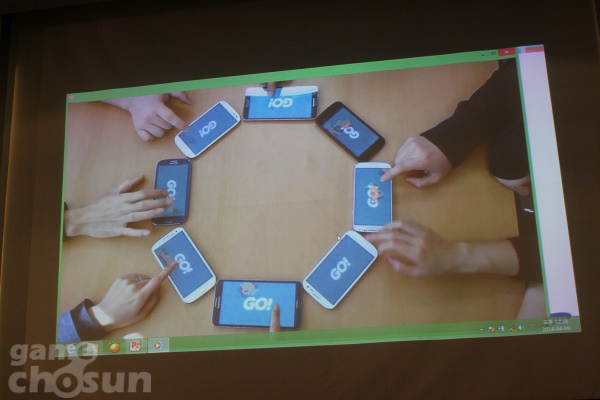 강단에 오른 김 전무는 스마트폰 등 IT기기는 사람들을 외롭지 않게 하는데 반해 옆에 있는 사람들을 덜 찾게 되는 단점을 안고 있다고 말하며 강연을 풀어 나갔다. 어떻게 하면 이들이 IT기기를 통해 함께 소통하고 추억을 만들어 나갈 수 있을지 고민한 끝에 멀티스크린과 그룹플레이 컨셉의 게임들을 만들게 됐다고 설명했다.