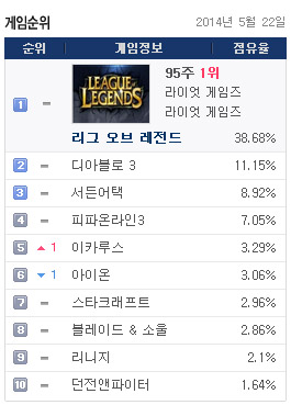 '디아블로3'가 리그오브레전드(롤)에 이어 PC방 점유율 2위 게임으로 상승했다. 이는 게임 내 최상위 아이템인 전설 등급의 드랍률을 100% 상향 조정한 덕이다.