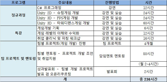 그 밖에도 유니티2D/3D 초급, 중급 과정 등 다양한 교육 프로그램이 마련 됐다.