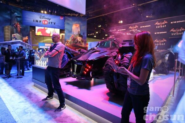 한편, 배트맨부스 좌측으로는 실제 배트카 모형이 전시되어 많은 관람객이 기념 촬영을 했다.