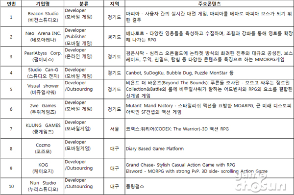 올해 E3 한국 공동관에는 펄어비스, KOG, 비쥬얼샤워, 네오아레나 등 총 10개의 중소 게임사가 입점해 다양한 온라인게임과 모바일게임을 선보였다.