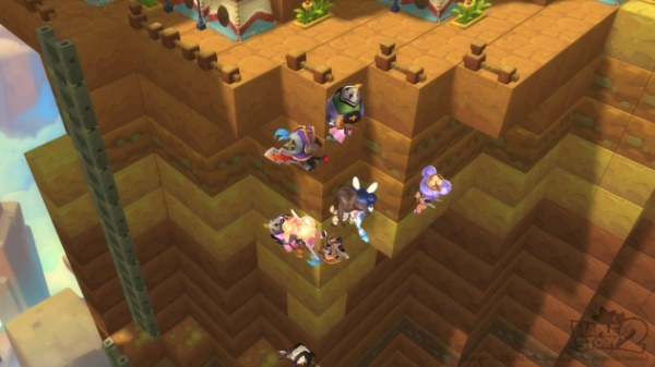 '메이플스토리2'는 정사각형의 블록이 조립된 아기자기한 모습의 세계를 지니고 있다.