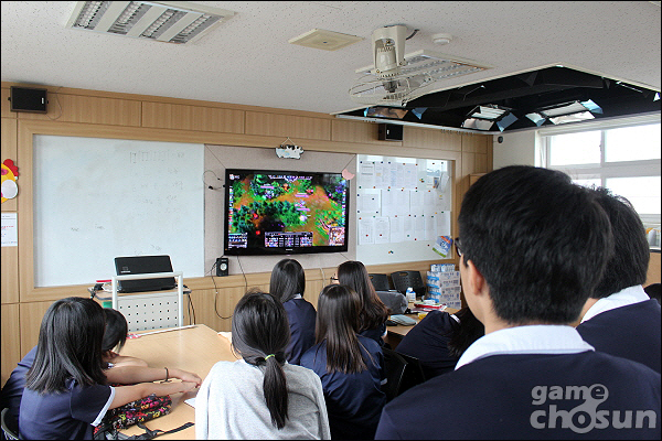 ▲ e스포츠 진로체험 행사 결승전에 오른 3학년 5반(위), 2학년 2반(아래) 학생들