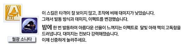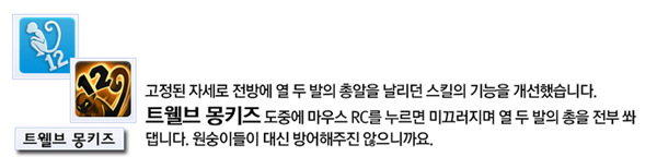 또, 고정된 자세로 공격하던 ‘트웰브 몽키즈’는 시전 중 마우스 우측버튼을 눌러 미끄러지듯 이동하는 모션을 추가했다.