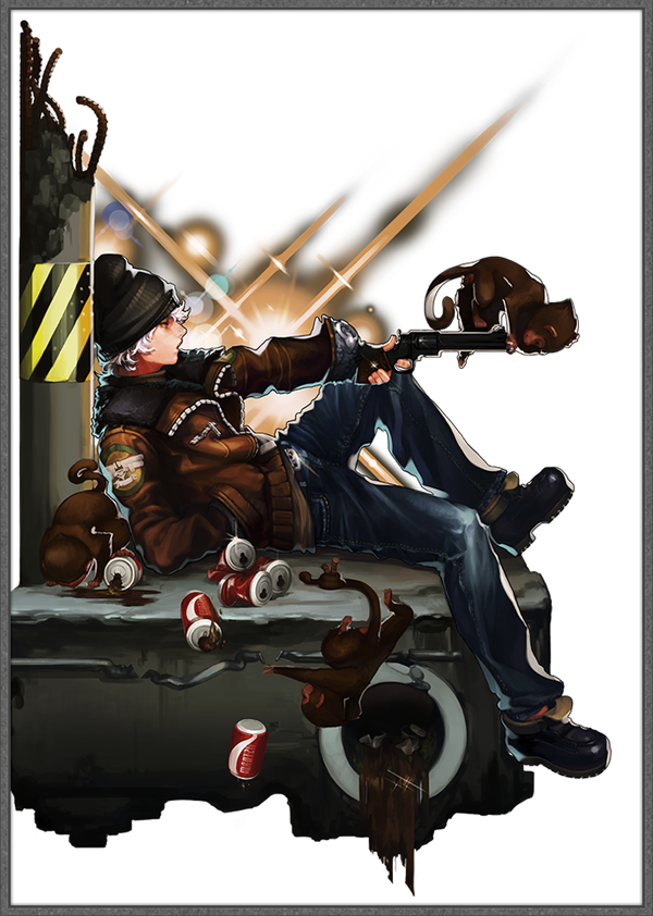 맥은 삶에 미련은 없으나 의지는 가지고 있습니다. 밝은 햇살 아래서의 평범한 삶을 막연하게 동경하지만 자신이 파묻힌 뒷골목, 그림자의 세계에서 벗어나지 못하는 처지를 비관하지는 않습니다. 사람을 죽이는 총은 몸의 일부나 다름없고, 화약 냄새와 피비린내는 항상 손 끝을 감돌지만. 알콜이 부족해 손 끝이 떨리기도 하지만 그 손은 온기를 잃지 않습니다. 이런 맥의 모습은 세계관 스토리 중 '인간의 증명'에서 잘 드러납니다.