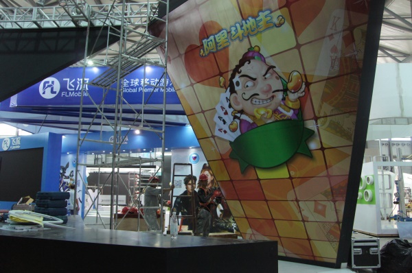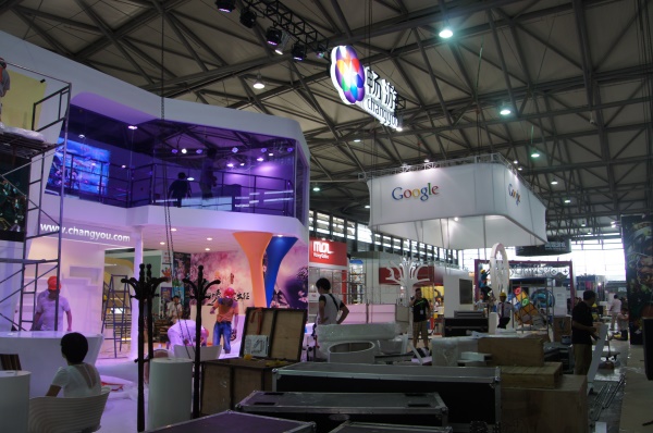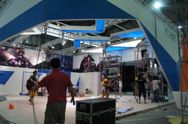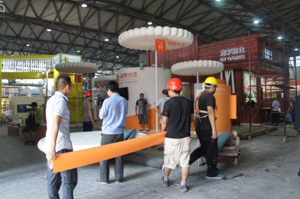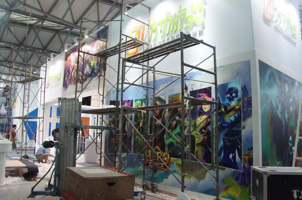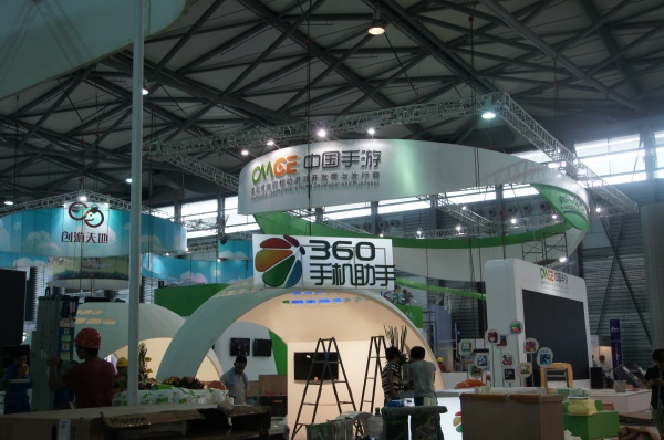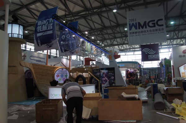 오는 31일부터 8월2일까지 '차이나조이2014'가 열리는 중국 상하이 뉴인터내셔널 엑스포센터는 전시회 준비가 한창이다. 후텁지근한 날씨만큼이나 개막 전부터 후끈 달아오른 모습이다.