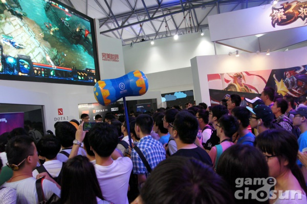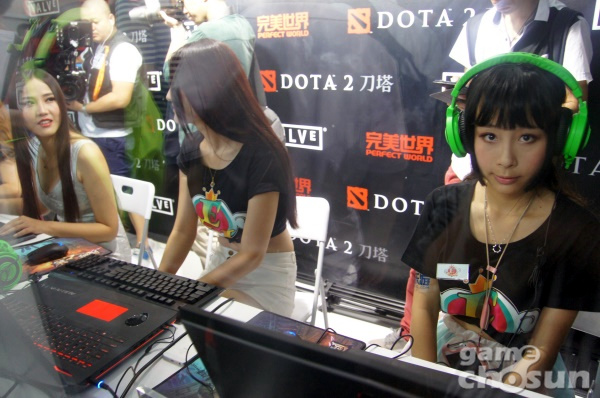 '리그오브레전드'의 텐센트가 차이나조이 현장에서 현역선수들의 'LOL 프로리그'를 진행하면, 퍼펙트월드는 미녀군단 및 일반 관람객들을 대상으로 한 '도타2' 플레이로 맞불을 놨다.