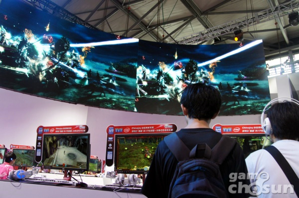 부스 전면에는 이벤트홀과 엔씨소프트의 북미스튜디오 아레나넷에서 만든 '길드워2' 시연대를 마련하고, 뒤쪽으로는 레이싱게임 'ACR'과 전략시뮬레이션 장르의 '블리츠크리그3(전격전3)'를 체험해볼 수 있게 꾸몄다.