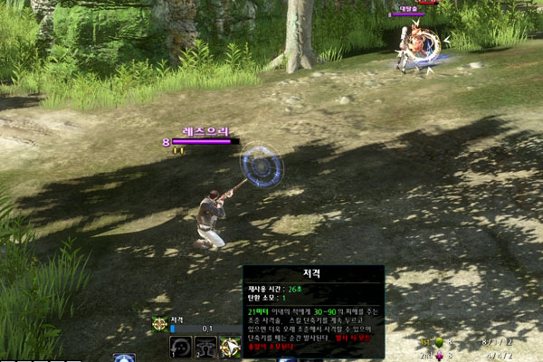 5레벨에 습득하는 섬광충격탄은 스킬 단축키 2번을 누르고 지면을 클릭하여 사용합니다.