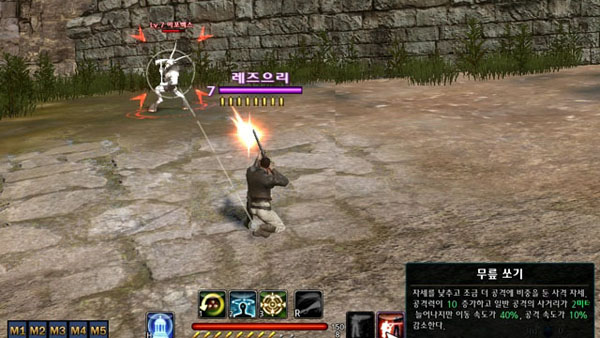 무릎쏘기를 하면 공격력과 사거리가 증가합니다. 하지만 이동속도와 공격속도가 감소합니다.