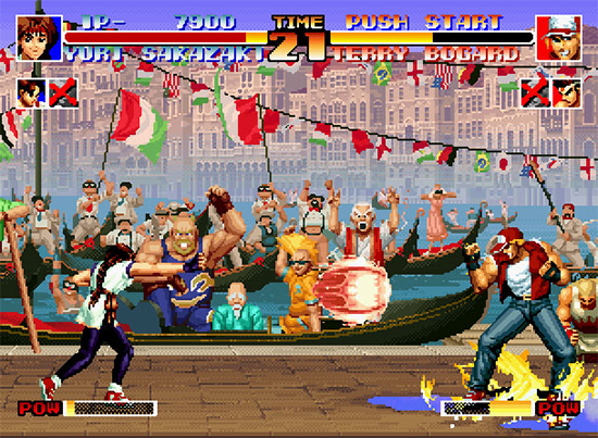 아랑전설과 용호의 권 캐릭터는 물론 다양한 오리지널 캐릭터까지 등장한 KOF는 캐릭터도 캐릭터지만, 지금까지 볼 수 없었던 3vs3의 대장전 시스템을 채용했다는 것이 인상 깊었다.