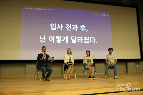 이후 공채 선배들의 생생한 경험담을 들어볼 수 있는 토크쇼가 열렸다. 이날 토크쇼 무대에 오른 홍노을 과장은 "입사 전에는 부모님이 게임 콘트롤러를 빼앗아가며 게임을 못하게 했다"면서 "하지만 지금은 게임을 하면 과일까지 깍아주신다"고 입사 전과 후의 변화를 소개했다.