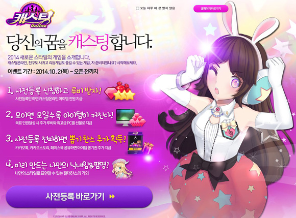 캐스팅온라인은 가상의 공간에서 육성한 캐릭터를 아이돌로 키워내는 온라인게임으로 오디션 프로그램의 재미 요소를 더한 것이 특징이다.