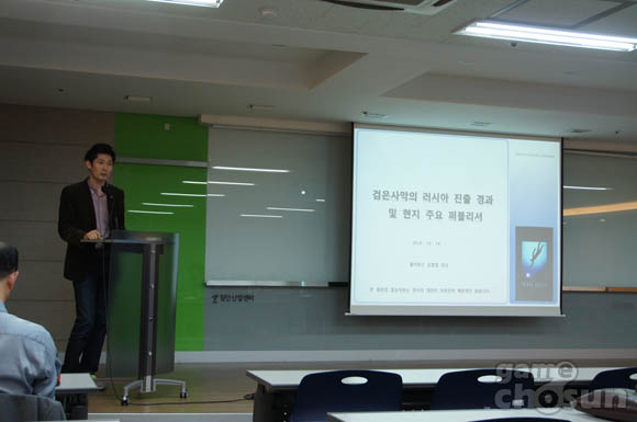 오병엽 이사는 자사의 온라인게임 검은사막의 러시아진출 과정에 대해 설명했다.