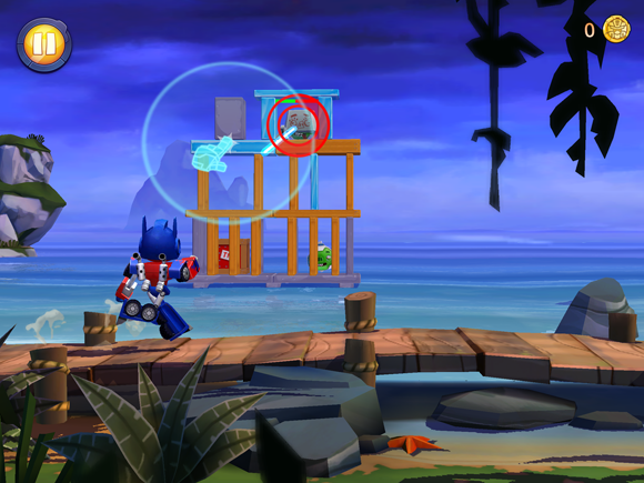 빡친새와 남자의 로망 로봇이 만났다. 2개의 인기 콘텐츠가 콜라보한 '앵그리버드트랜스포머'는 새총게임이었던 원작과 달리 러너액션과 슈팅게임을 혼합한 게임이다.