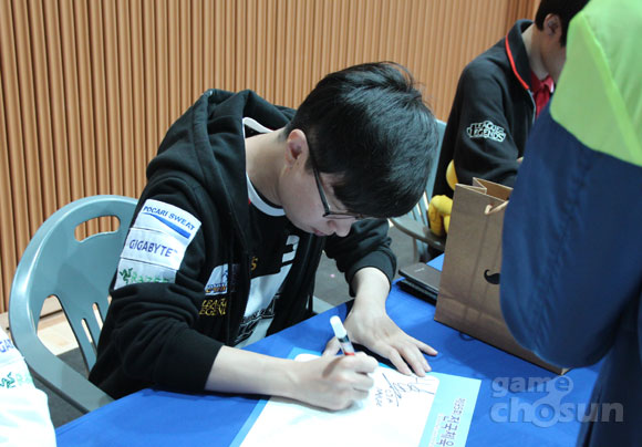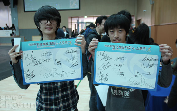 한국e스포츠협회 소속 프로게이머들이 29일 제주대학교 체육관에서 열린 '제 95회 전국체육대회' e스포츠 종목의 개막을 앞두고 팬사인회를 가졌다.