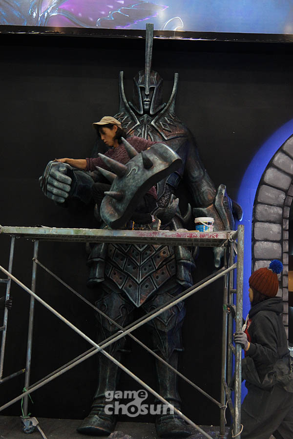 ▲ 로스트아크의 거대 동상 NPC가 현장 부스에 설치됐다.