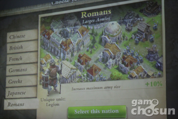게이머는 석기시대에서 주변 동물을 사냥하면서 진행하고, 철기시대가 되면 각각의 특징이 있는 7개 국가(영국, 그리스, 중국 등) 중 하나를 선택하게 된다. 영국을 선택하면 좀 더 효과적인 궁수를 얻고, 중국을 선택하면 더 많은 시민을 소환할 수 있는 식이다. 지금은 7개 국가이지만 출시된 후에는 더 많은 국가가 추가될 예정이다. 한국이 포함될지는 아직 미정이다.