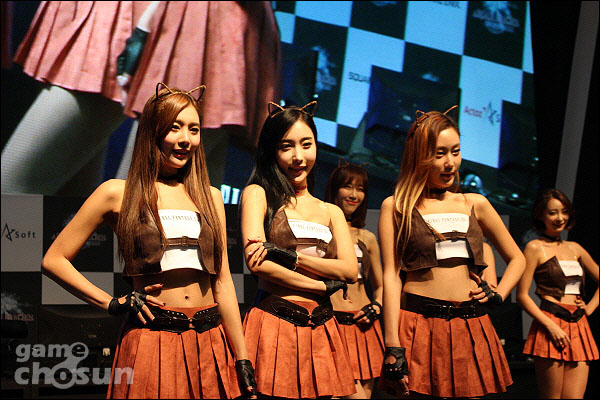 액토즈소프트 부스걸들이 가요에 맞춰 섹시 댄스를 보이며 관객들의 눈을 사로 잡았다.