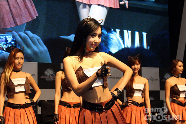 액토즈소프트 부스에 설치된 무대에 나타난 부스걸들은 처음엔 간단한 워킹과 함께 포즈만 잡았지만 이후 시작된 가요 음악과 함께 섹시 댄스를 선보였다. '걸스데이'의 '달링'으로 시작된 부스걸들의 공연은 '오렌지캬라멜'의 '까탈레나'로 이어져 약 7분 동안 진행됐다.
