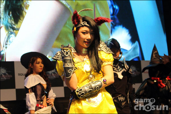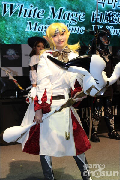 코스프레 전문팀 제이코스와 모델 최혜연이 파이널판타지14 캐릭터로 분해 지스타 2014 액토즈소프트 부스에 등장한 것.